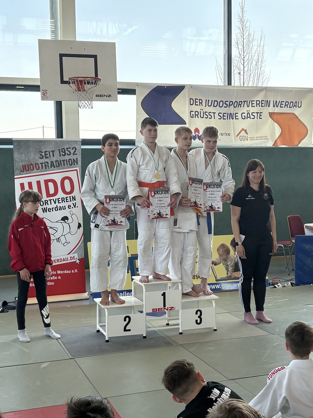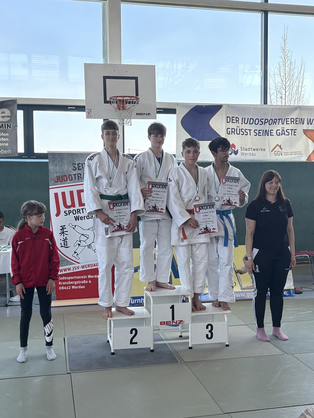 Hier die Platzierungen der U18: Jeremias (9.), Marvin (7.), Luca (3.) und Lev (1.)