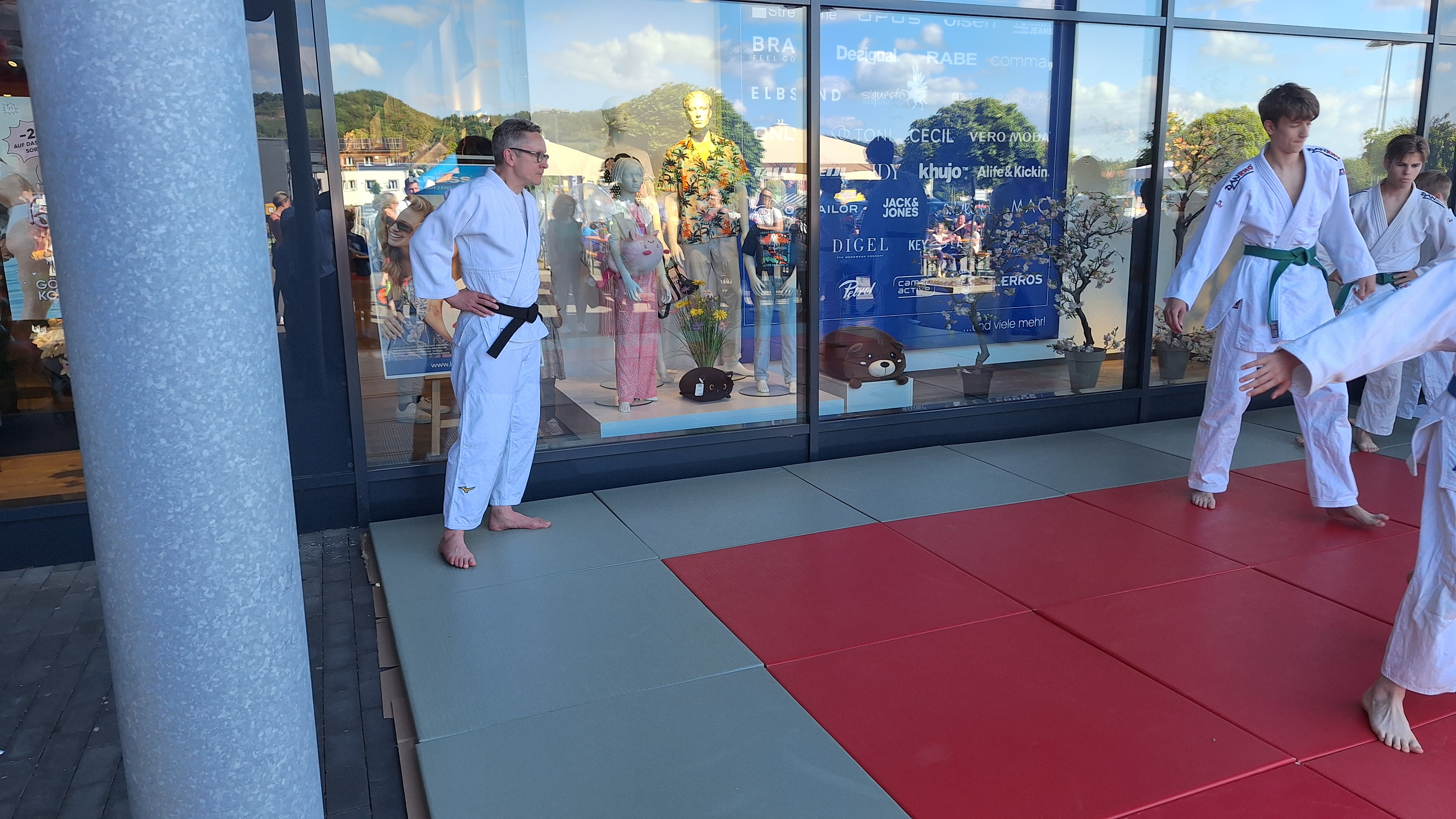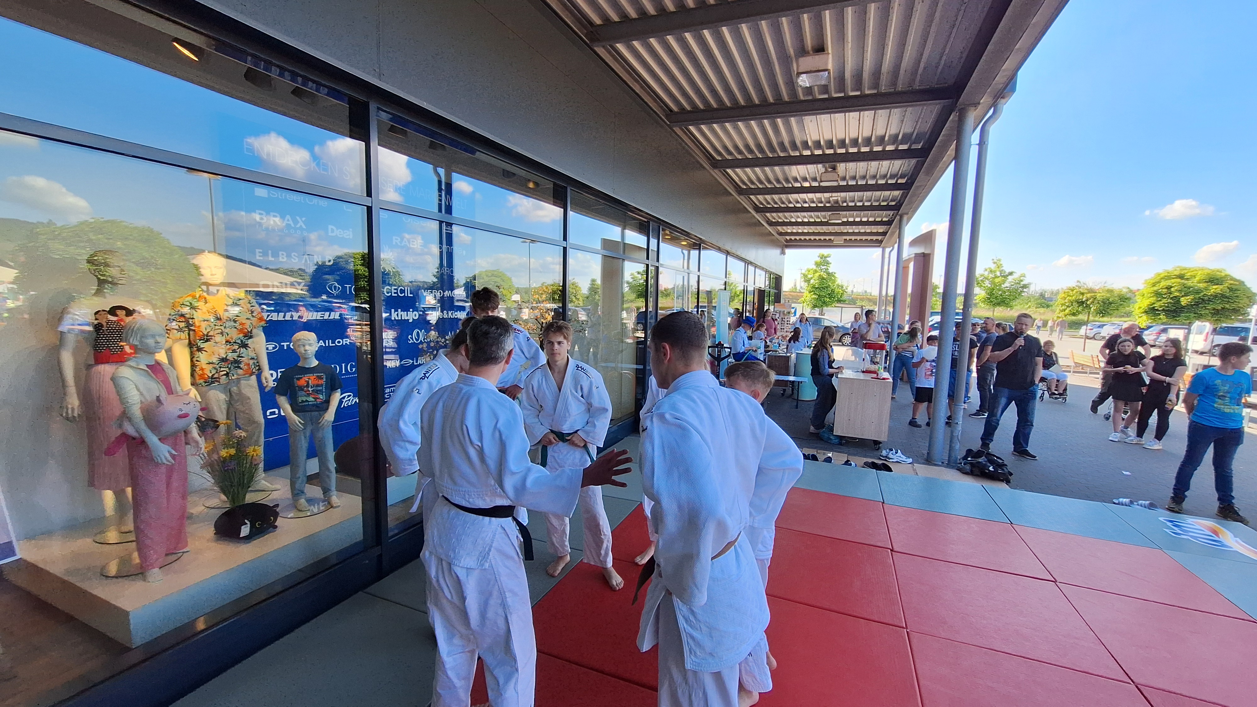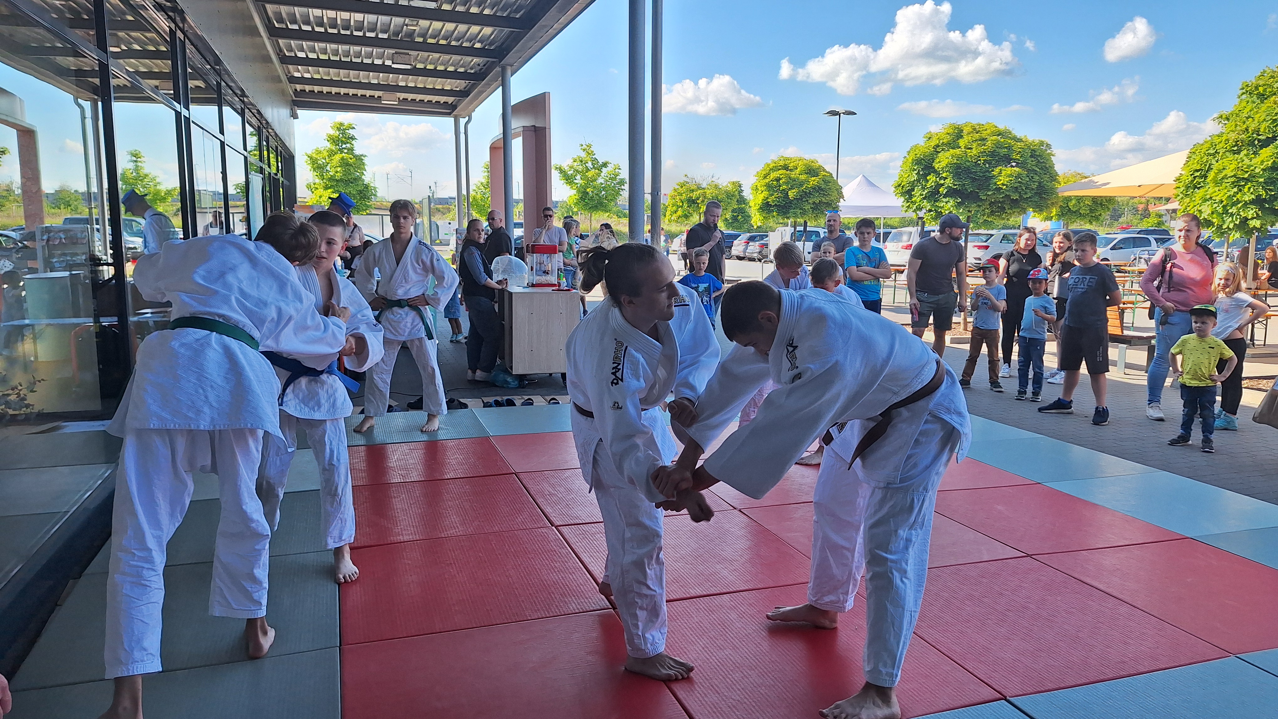 Am 30.05. zeigten Joel, Robert, Elmar, Jeremias, Friedrich, Lev und Gabriel bei der Vorführung vor dem dm-Drogeriemarkt in Radebeul ihr Können. Sven war für die technische Ausführung verantwortlich, es wurden Griftechniken, Fallübungen, Würfe und Festhalten gezeigt. Die Moderation am Mikrophone übernahm Stefan. Wir danken dem dm-Team von Herrn Wunderlich für die Möglichkeit uns zu präsentieren. Unseren Wettkämpfern, den Helfern und dem Publikum ein recht herzlichen Dank.