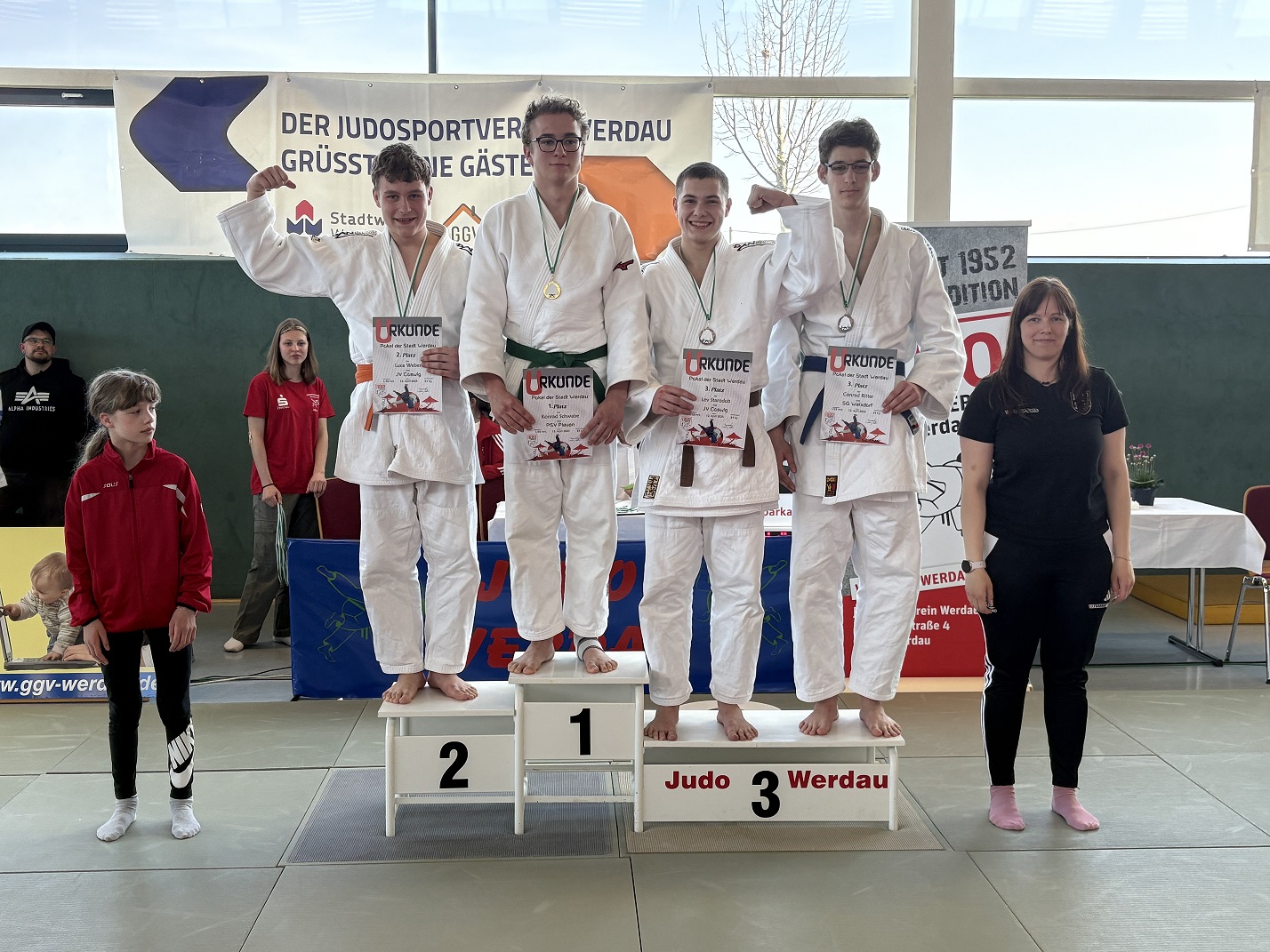 Hier die Platzierungen der U18: Jeremias (9.), Marvin (7.), Luca (3.) und Lev (1.)