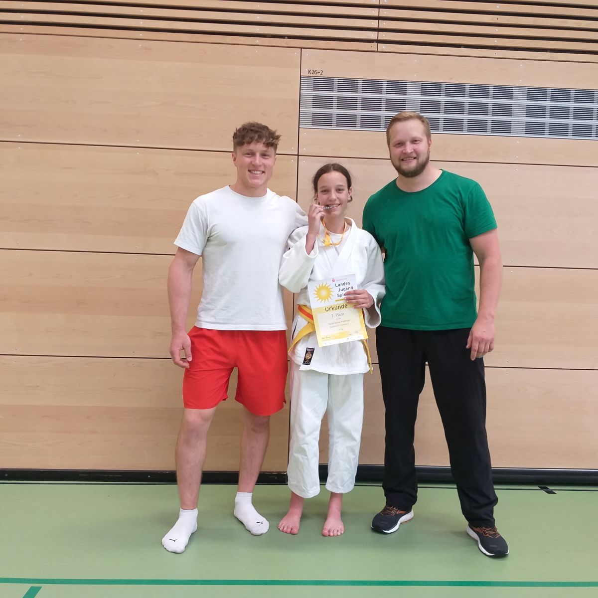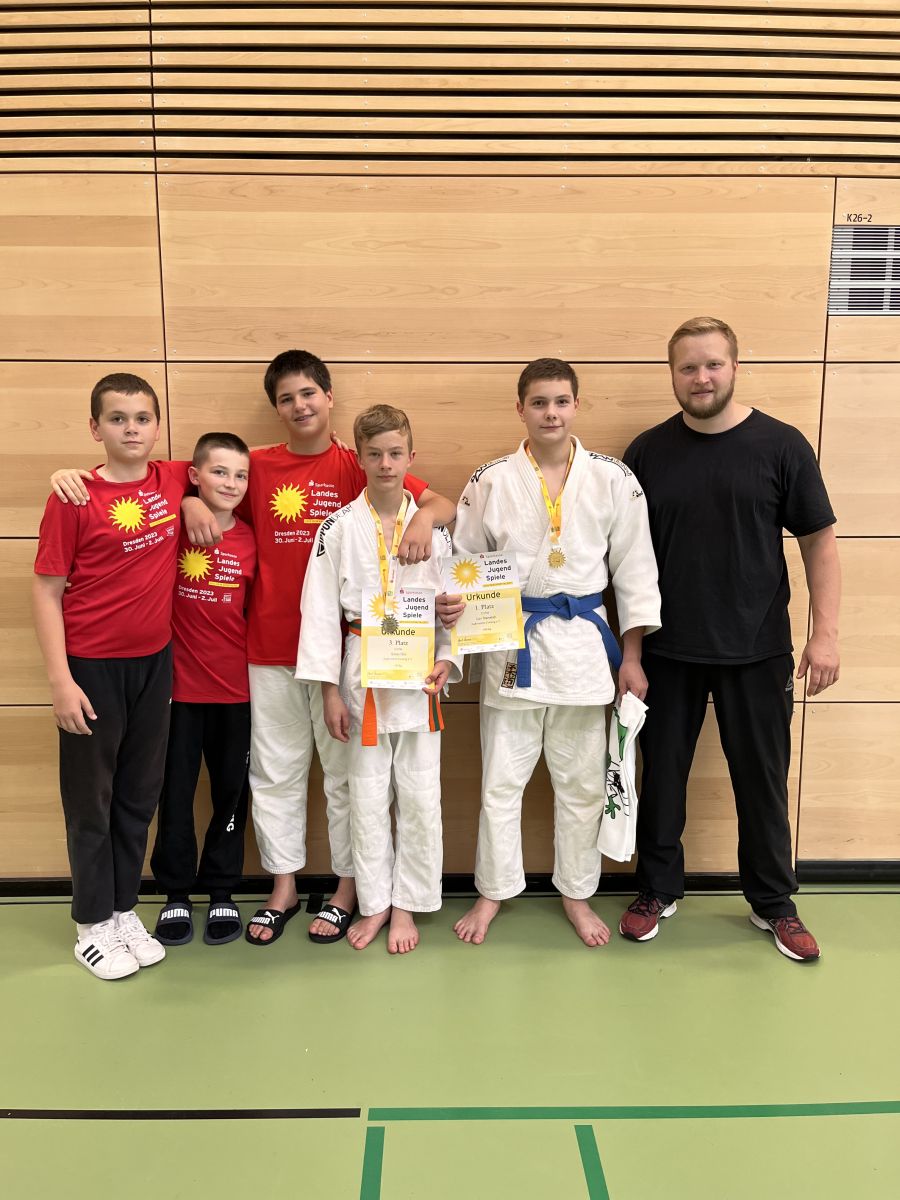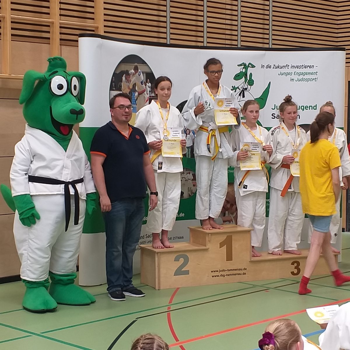 Unsere U13 männlich wurde erfolgreich vertretten durch Finn, Friedrich und Savelii. Am Nachmittag kämpfte Heidi-Maria in ihrer Alters- und Gewichtsklasse. Ihr Pool war mit 10 teilweise bekannten Teilnehmerinen besetzt. Mit drei erfolgreichen Kämpfen stand Heidi-Maria im verdienten Finale gegen die spätere Siegerin vom Judoclub Leipzig e.V. In der Bewertung des Wettkampfes kam es zur Hantei-Entscheidung. Nach dem Wettkampf gratulierten die Trainer vom Judoclub ebenfalls für die starke Leistung. Mit dem verdientem Silber und einem Foto mit dem Landestrainer Frederik Jäde konnte Heidi-Maria lächend nach Hause fahren. Nicht minder sind die Ergebnise von unseren drei männlichen Wettkämpfer zu sehen. Friedrich kämpfte sich in seiner mit 21 Teilnehmern besetzten Gruppe bis in das Halbfinale. Den dritten Platz erkämpfte er sich dann in der Hoffnungsrunde. Mit der Erfolgsgeschichte von Bezirkseinzelmeisterschaft, Sachsenmeisterschaft und den Landesjugendspielen kann er zum dritten Mal seinen Platz dominieren. Savelli war bei seinem dritten Wettkampf in der gleichen Gruppe wie Friedrich und konnte sich auf den neunten Platz vorkämpfen. Finn war in einer Gruppe mit 13 Teilnehmern angetretten. Seinen ersten Gegner vom JSV Rammenau sah er auf dem Treppchen wieder. Beide bekamen die Bronze für ihre starken Leistungen.
