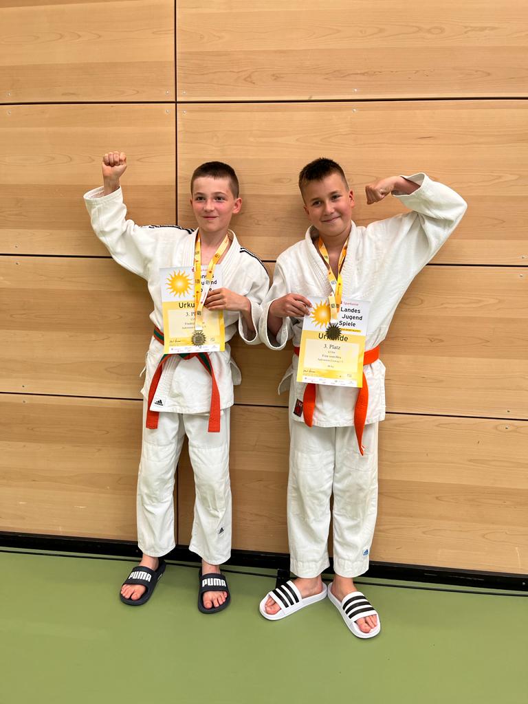 Am zweiten Wettkampftag waren Dima, Lev, Marvin und Sirius in der U15 männlich für unseren Verein am Start. Dima hatte sich in seinem ersten Wettkampf leicht verletzt und wurde aus dem Pool genommen. Leider ist uns allen durchgegangen, dass nach der Wettkampfordnung U15 der 7. Kyu nicht zugelassen ist. Somit hatten wir hier Glück im Unglück. Sirius hatte gleich im ersten Kampf "Jeder gegen Jeden" den späteren Sieger als Gegner. Erst im Golden Score musste er sich einem Hebel vom Wettkämpfer des Judoclub Leipzig ergeben. Schlussendlich erkämpfte sich Sirius den verdiente dritten Platz. Marvin und Lev waren gemeinsam in der Gruppe mit insgesamt 12 Teilnehmern gestartet. Bis zum Halbfinale standen beide ergebnistechnisch gleich auf. Marvin musste sich dem späteren Zweitplazierten ergeben und verfehlte kanpp den dritten Platz in der Hoffnungsrunde. Lev hatte dann im Kampf um Gold den Gegner von Marvin. Im Golden Score war Lev dann konditionell der Stärkere und bezwang den gut 7 Kilogramm schwereren Gegner.