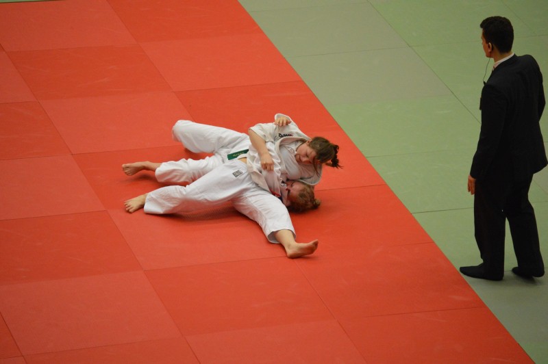 Dann war es soweit, Luise startete in den Wettkampf. Und wie! Bis auf ihren zweiten Kampf, in dem sie unglücklich einen zeitigen Ippon gegen sich hinnehmen musste, gewann Luise alle ihre Kämpfe vorzeitig mit Ippon. So marschierte sie durch ein Feld von Leistungssportlerinnen bis zum Erreichen des kleinen Finales. Dieses sollte erst am zeitigen Nachmittag stattfinden. So blieb Luise etwas Zeit zum Verschnaufen.