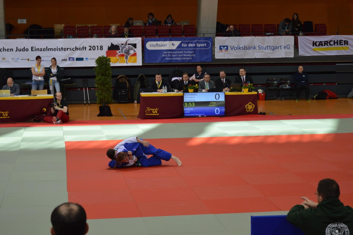 Nachdem Luise in ihrem ersten Kampf nach 7 Sekunden mit Waza ari nach Harai Goshi (Foto oben) in Führung ging, musste sie die Gnadenlosigkeit bei Deutschen Meisterschaften erleben. Nach einem missglückten Wurfansatz waren beide Sportlerinnen bereits am Boden, Luise wollte in den Bodenkampf gehen und ihre Gegnerin nutzte diesen Moment aus, um nachzusetzen und gewann somit diesen Kampf. Da die Gegenerin ihren nächsten Kampf gegen die spätere Deutsche Meisterin in dieser Gewichtsklasse, Martyna Trajdos, verlor, hatte Luise nicht die Gelegenheit, in der Trostrunde ihr Können weiter unter Beweis zu stellen.