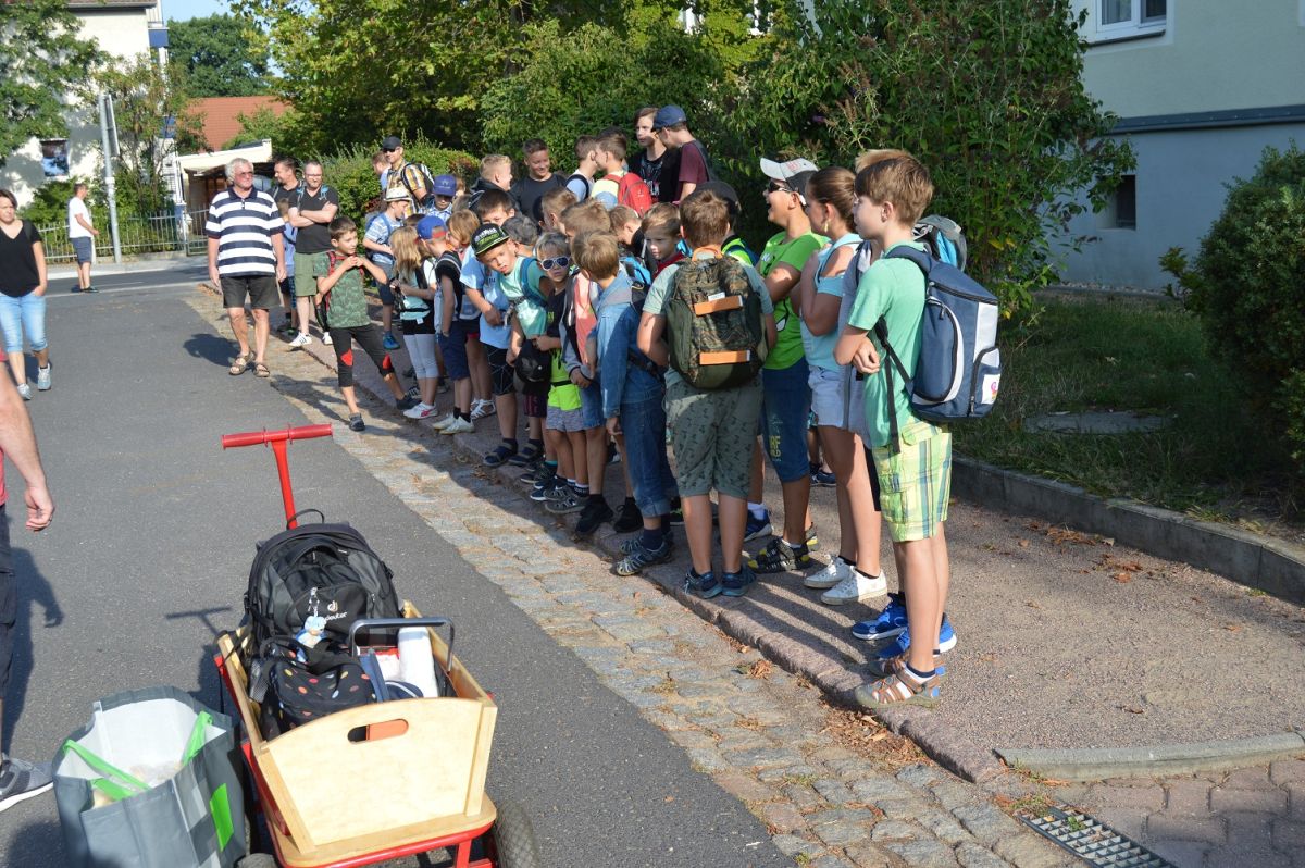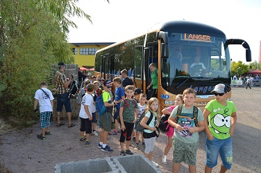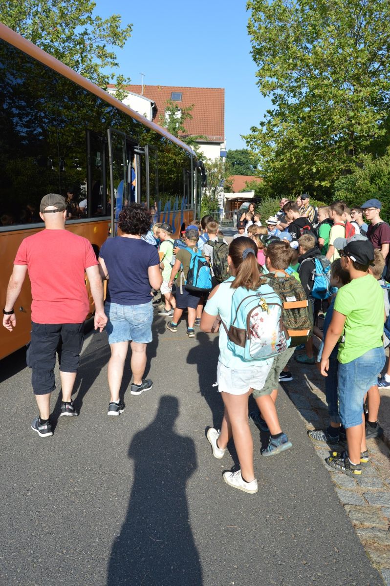 53 Judoka unseres Vereins warten auf den Bus Richtung Sonnenlandpark.