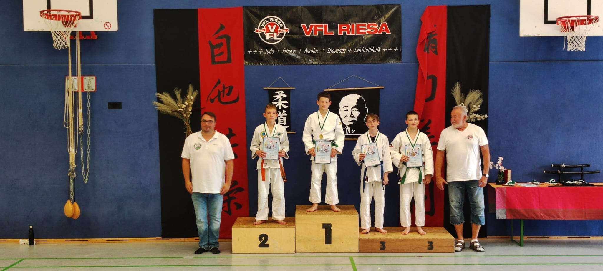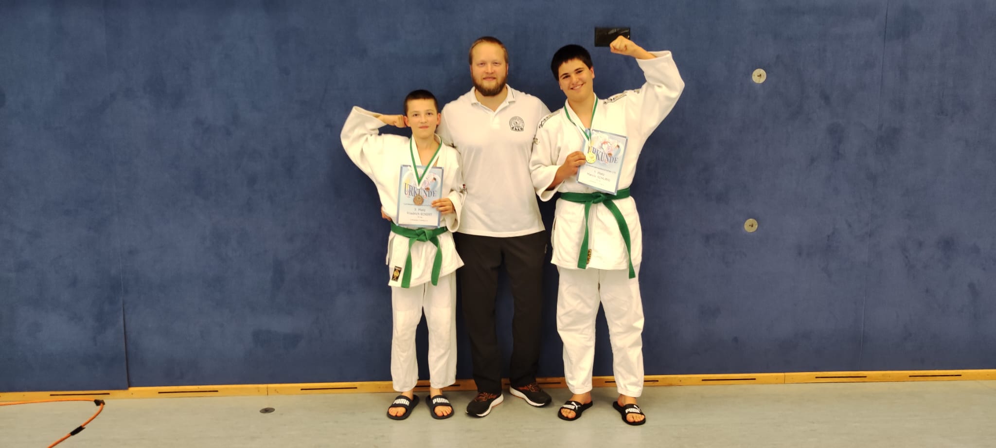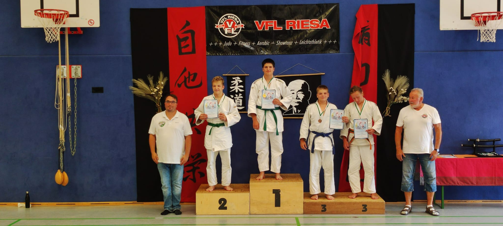 Am 07. September fanden die Landeseinzelmeisterschaften (LEM) der U15 in Riesa statt. Hier waren Marvin, Friedrich und Savelii durch ihre erfolgreiche Teilnahme an der BEM U15 qualifiziert. 28 Vereine aus Sachsen mit ca. 170 Wettkämpfern kamen zu Ausscheid der Sachsenmeister. Für uns holte Marvin den Titel in einem ungeschlagenen Turnier. Friedrich unterlag im ersten Kampf und holte sich den 3. Platz über die Hoffnungsrunde. Auch Savelii unterlag im ersten Kampf und zeigte in der Hoffnungsrunde bis zum Kampf um Paltz 3 sein können. Er konnte sich dann mit Platz 5 ebenso über ein starkes Turnier freuen. Wir danken für die erfolgreiche Teilnahme und sind stolz, dass wir Platz 8 in der Vereinsrangliste erreichen konnten. Unser Trainer Stefan war sichtlich über das Ergebnis des Turniers angetan. Nun fahren Marvin als "Sachsenmeister" und Friedrich zu den Mitteldeutschen Einzelmeisterschaften der U15 am 21.09.24 nach Oelsnitz ins Vogtland. Wir wünschen eine erfolgreiche und verletzungsfreie Teilnahme. Die Fotos wurden wieder bereitgestellt von Micha und Thomas.