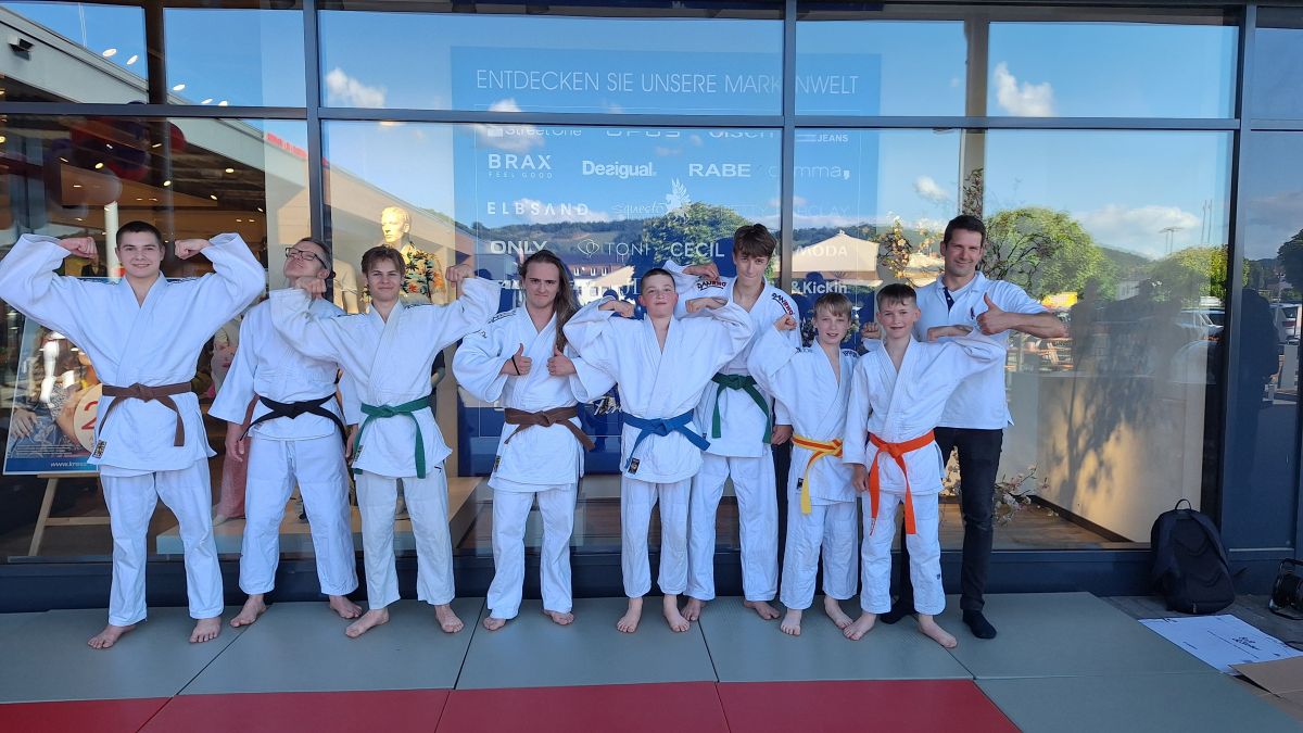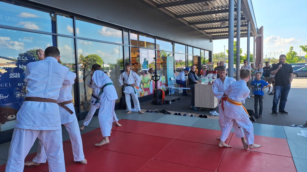 Am 30.05. zeigten Joel, Robert, Elmar, Jeremias, Friedrich, Lev und Gabriel bei der Vorführung vor dem dm-Drogeriemarkt in Radebeul ihr Können. Sven war für die technische Ausführung verantwortlich, es wurden Griftechniken, Fallübungen, Würfe und Festhalten gezeigt. Die Moderation am Mikrophone übernahm Stefan. Wir danken dem dm-Team von Herrn Wunderlich für die Möglichkeit uns zu präsentieren. Unseren Wettkämpfern, den Helfern und dem Publikum ein recht herzlichen Dank.